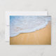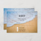 RSVP-Karte mit einem Foto eines goldbraunen Sandstrandes mit weißer, schäumender Brandung und blauem Wasser.