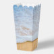 Gastgeschenk Hochzeit Boxen mit einem Foto von einem goldbraunen Sandstrand mit weißer, schäumender Brandung.