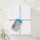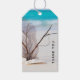 Vielen Dank, dass Sie ein Geschenk Tags mit einem wunderschönen Foto. Tropisch blaues Wasser und schäumendes Surfen im Hintergrund. Eine Sammlung von Muscheln und Stielen Set auf einem weißen Sandstrand.