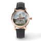 Uhr, Klassische Damenuhr mit schwarzen Lederarmband