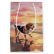 Sandy Paws Beagle Dog on Beach Sunset Mittlere Geschenktüte