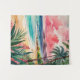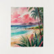 Eine friedliche tropische Küste, an der der goldene Sand auf die sanften türkisblauen Wellen trifft. Unter einem traumhaft rosa und aquamarinen Sonnenuntergang schlängeln sich üppige Palmen. Die perfekte Flucht für diejenigen, die den Strand und die Meeresbrise Liebe.