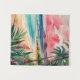 Eine friedliche tropische Küste, an der der goldene Sand auf die sanften türkisblauen Wellen trifft. Unter einem traumhaft rosa und aquamarinen Sonnenuntergang schlängeln sich üppige Palmen. Die perfekte Flucht für diejenigen, die den Strand und die Meeresbrise Liebe.