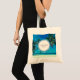Eine personalisierte mit Monogramm Tasche mit einem tropischen Foto mit Kokospalmen, die sich über einen abgelegenen weißen Sandstrand erstrecken. Türkisfarbenes Wasser und ein azurblauer Himmel im Hintergrund.