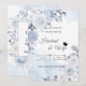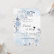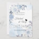 This design features a delicate arrangement of soft blue, white, and lavender roses and botanical elements, framing a clean center area for your event details. The background has a dusty blue watercolor wash, lending a romantic, ethereal, and elegant feel.