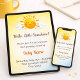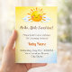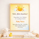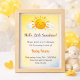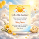 Ein Design mit weichem Sonnenschein, das sanfte warme Töne und eine leichte, luftige Ästhetik aufweist. Das zarte Sonnenmotiv schafft eine ruhige und fröhliche Atmosphäre, perfekt zur Feier einer neuen Ankunft. Durch die Kombination von subtiler Wärme und moderner Einfachheit erfasst dieses Sonnenschein-Thema die Süße und Helligkeit einer Babyparty, während es einen sauberen, eleganten Look beibehält.