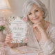 Feiern Sie einen bemerkenswerten Meilenstein mit dieser eleganten Einladung zum 75. Geburtstag, die ein anmutiges Blumendesign zeigt, das von einem klassischen englischen Garten inspiriert ist. Zarte rosa Pfingstrosen und cremeweiße Magnolien umrahmen das Layout mit üppigem grünem Laub und schaffen ein ausgeklügeltes und zeitloses Aussehen, das perfekt ist, um einer besonderen Frau, die fünfundsiebzig wird, Ehre zu erweisen.