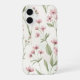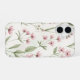 Fügen Sie Ihrem Telefon mit diesem atemberaubenden weichen rosa Aquarell-Blumen-Handyhülle einen Hauch von zarter Schönheit hinzu! Diese Gestaltung zeigt ein nahtloses Muster aus sanften rosa Kosmosblumen, zarten Knospen und üppigen grünen Blättern auf einem dezenten hellen Hintergrund und fängt die Essenz von Frühlings-Eleganz und minimalistischem botanischem Charme ein.