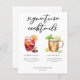 Diese schicke Cocktails-Liste enthält schlichte schwarze Typografie über 2 Drinks und deren Zutaten für Ihre Hochzeitsreise-Bar. Ein niedlicher Sommer Sangria und Moskauer Maultier zeichnend fügen einen coolen Flair zu Ihrem Bar Menü. Füllen Sie bitte die Namen des Paares und das Datum für seinen Empfang aus.