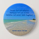 Ein Tribut an die natürliche Schönheit und Ruhe der wunderschönen Insel Sanibel, Florida. Die Insel der Südwestbarriere wurde zerstört und vom Festland abgeschnitten, nachdem sie im September 2022 von Hurrikan Ian, einem starken Hurrikan der Kategorie 4, getroffen wurde. Auf der Schaltfläche befinden sich das Foto eines weißen Sandstrandes der Insel Sanibel und das blaugrüne Wasser des Golfs von Mexiko (das beim bleibe im Tortuga Beach Club Resort eingefangen wurde). Die ermutigenden und inspirierenden Worte lauten: "Unten, aber nicht besiegt - gebacken, aber nicht gebrochen - Abgeschieden, aber nie zusammen!" Der Text kann ohne Aufpreis für Ihre persönliche Nachricht gelöscht oder bearbeitet werden. Wählen Sie aus der runden oder quadratischen Taste. Fotografie und Design von Glenda Motsavage, einem langjährigen Bewohner Floridas.