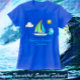 Freuen Sie sich auf die bunte Sanibel Island, die Florida Ozeanwellen und den Segelboot T - Shirt. Das Schiff ist helltürkisblau, weiß und gelb. Es gibt eine Puffwolke, hellgelbe Sonne und blaue und weiße Wellen. Sanibel Island, Florida ist in Übereinstimmung mit blauem Skript unter den rollenden Ozeanwellen.