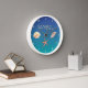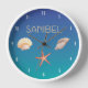 Leben Sie auf Sanibel Island mit diesem Sanibel-Design mit Aquarellbrunnen und Seestern auf blauem und aquamarinem Hintergrund. Feiern Sie Erinnerungen in Florida mit dem Strandthema Sanibel clock.