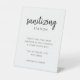 Einfaches, stilvolles Schild mit der sanften Händeklemme in modernem minimalistischem Design mit einer eleganten Naturskripttypografie in Schwarz/Weiß und einem informellen Schriftart im handgeschriebenen Stil. Der Text kann leicht für ein einzigartiges Design personalisiert werden, um die Gäste während Ihres besonderen Tages sicher behalten.