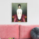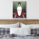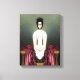 Ein gruseliges Mädchen mit kurzem, dunklem Haar, großen Buggyen Augen und ohne Mund, ihre Arme erscheinen als Zwangsjacke. In einem grünen Saal in einem Sanarium sitzend, wird eine rote Satindecke um ihren leglatten Torso gezogen. Original digitale Kunst von Taylor Addams.