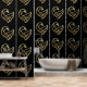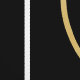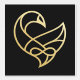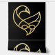Das Bild zeigt ein stilisiertes und abstraktes Design auf schwarzem Hintergrund. Es besteht aus glatten, fließenden Linien in Gold, die eine Form bilden, die einem Herz ähnelt, verflochten mit einem Unendlichkeitssymbol. Die Linien sind kräftig und haben eine gleichmäßige Dicke, wodurch ein Gefühl von Eleganz und Kontinuität entsteht. Das Gesamtdesign ist minimalistisch und modern, mit einem Fokus auf die Flüssigkeit und Verbundenheit der Formen.