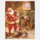 Eine reizend Vintage Fleece umfassender kennzeichnenweihnachtsmann und seine Elfe in der Renscheune kleine Kätzchen fütternd.