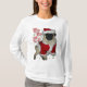 Unser Sankt-Mops schaut in seinem roten Weihnachtsmann-Anzug auf einem grünen Hintergrund mit Schneeflocken und Tatzendrucken scharf. Sankt-Tatzen (alias Rocko) wünscht Ihnen sehr frohen Weihnachten und ein guten Rutsch ins Neue Jahr. Ho-Ho-Ho! Ideal für alle Hunde- und Mopsliebhaber.