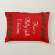 Niedliches Feiertagsakzentkissen, das Weihnachtsmann vor einem Weihnachtsbaum zeigt, der mit vielen Spaß und einzigartige Verzierungen verziert wird. Rückseite des Kissens ist helles Rotes und hat etwas Stechpalme und eine Mitteilung, die "liest, haben ein Stechpalmen-lustiges Weihnachten!" Eine Originalvorlage durch Angela Hort-Dunn.
