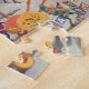 Ein schönes Vintages Puzzlespiel, das Sankt mit seinen Elfen in der Werkstatt kennzeichnet.