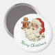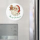 Cute, vintage picture of Santa holding a gingerbread man, is featured on this round Christmas magnet. With message, "Merry Christmas", this magnet would make a nice decoration for the holidays. Makes a good small gift or stocking stuffer too!
