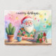 Diese helle, moderne Aquarell-Illustration zeigt den Weihnachtsmann in einem roten tropischen Sommeranzug, wie er an seinem Laptop arbeitet. Perfekt für den Weihnachtsmann, der diese Saison digital wird! Dieses moderne Aquarell-Design zeigt den Weihnachtsmann in einem roten tropischen Sommeroutfit und einer weißen Sonnenbrille, wie er online an seinem Computer arbeitet, umgeben von Kaffee, Palmen und eingepackten Geschenken. Eine lustige, sonnige Variante der traditionellen Weihnachtsszene – perfekt für Remote-Arbeiter, Technikliebhaber und alle, die die Feiertage kalifornisch feiern.