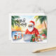 Diese helle, moderne Aquarell-Illustration zeigt den Weihnachtsmann in einem roten, tropischen Sommeranzug, wie er an seinem Laptop arbeitet. Perfekt für "Santa ist dieses Jahr digital"! Dieses moderne Aquarell-Design zeigt den Weihnachtsmann in einem roten, tropischen Sommeroutfit und einer weißen Sonnenbrille, wie er online an seinem Computer arbeitet, umgeben von Kaffee, Palmen und eingepackten Geschenken. Eine lustige, sonnige Variante der traditionellen Weihnachtsszene - perfekt für Remote-Arbeiter, Technikliebhaber und alle, die die Feiertage kalifornisch feiern.