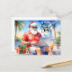 Diese helle, moderne Wasserfarben-Illustration zeigt den Weihnachtsmann in einem roten, tropischen Sommeranzug, wie er an seinem Laptop arbeitet. Perfekt, wenn der Weihnachtsmann diese Saison digital wird! Dieses moderne Wasserfarben-Design zeigt den Weihnachtsmann in einem roten, tropischen Sommeroutfit und einer weißen Sonnenbrille, wie er online an seinem Computer arbeitet, umgeben von Kaffee, Palmen und eingepackten Geschenken. Eine lustige, sonnige Variante der traditionellen Weihnachtsszene – perfekt für Remote-Mitarbeiter, Technikliebhaber und alle, die die Feiertage im kalifornischen Stil feiern.