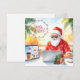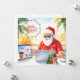 Diese helle, moderne Aquarell-Illustration zeigt den Weihnachtsmann in einem roten tropischen Sommeranzug, wie er an seinem Laptop arbeitet. Perfekt für "Santa's gone digital" in dieser Saison! Dieses moderne Aquarell-Design zeigt den Weihnachtsmann in einem roten tropischen Sommeroutfit und einer weißen Sonnenbrille, wie er online an seinem Computer arbeitet, umgeben von Kaffee, Palmen und verpackten Geschenken. Eine lustige, sonnige Variante der traditionellen Weihnachtsszene - perfekt für Remote-Mitarbeiter, Technikliebhaber und alle, die die Feiertage im kalifornischen Stil feiern.
