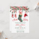 Celebrate the mom-to-be with this festive "Santa Baby" Christmas baby shower invitation. Featuring a cute teddy bear in a holiday stocking, red bows, and winter greenery, it’s perfect for a cozy and joyful holiday celebration.