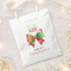 Red and green bow, Santa hat and snowflakes Christmas Santa Baby shower paper favor bag. This festive Christmas baby shower design is adorned with a prominent, impressive red and green bow covered with snow and with a snowflake at its center and a Santa hat. The phrase "Santa Baby" is written in script and decorative typography.