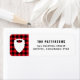 Rustikales und gemütliches Ferienadressen-Label mit kariertem, roten und schwarzen Muster mit Santa Bard Akzent. Matching-Elemente sind verfügbar.