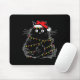 Santa Black Cat hallte in Weihnachtsbaumlicht auf Mousepad