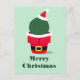 Eine fröhliche Weihnachtspostkarte mit einem Kakteen im Santa-Outfit auf hellgrünem Hintergrund. Weihnachtsfeiertag Weihnachten Weihnachten Postkarte Hochzeitsszenario | ©Melissa Patton - Künstler/Illustrator