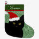 Santa Cat Black mit gelben Augen Personalisiert Großer Weihnachtsstrumpf