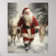 Santa Claus and Reindeer Christmas Wall Art Poster