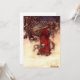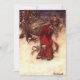 Karte mit Arthur Rackhams Abbildung Santa Claus (1907). Ein roter, roter Weihnachtsmann trägt eine Tüte Weihnachtsgeschenke in einem schneebedeckten Holz. Elfen fliegen an seiner Seite. Ein fröhliches Geschenk zu Weihnachten!