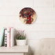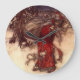 Uhr mit Arthur Rackhams Abbildung Santa Claus (1907). Ein roter, roter Weihnachtsmann trägt eine Tüte Weihnachtsgeschenke in einem schneebedeckten Holz. Elfen fliegen an seiner Seite. Ein fröhliches Geschenk zu Weihnachten!