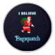 Glaubst du an den Weihnachtsmann? Ein Bild des Weihnachtsmannes, das sich an den markanten Sasquatch des Patterson-Gimlin Films anlehnt. Der Text "Bagsquatch" erscheint ebenso wie der Text mit dem Text "I GLAUBE". Bagsquatch, auch bekannt als Bigbag, ist eine schwer fassbare nächtliche Figur, die im Allgemeinen nur an einer Nacht Ende Dezember zu sehen ist. Bagsquatch wird oft entlang von Dächern und gelegentlich in Wohnzimmern gesehen und befindet sich oft in naher Nähe zum fliegenden Karibu. Bagsquatch lässt sich leicht durch ihr hellrot-weißes Pellage mit schwarzem Trimm und ikonischem "Ho! Ho! Ho!" Vokalisierungen.