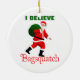 Glaubst du an den Weihnachtsmann? Ein Bild des Weihnachtsmannes, das sich an den markanten Sasquatch des Patterson-Gimlin Films anlehnt. Der Text "Bagsquatch" erscheint ebenso wie der Text mit dem Text "I GLAUBE". Bagsquatch, auch bekannt als Bigbag, ist eine schwer fassbare nächtliche Figur, die im Allgemeinen nur an einer Nacht Ende Dezember zu sehen ist. Bagsquatch wird oft entlang von Dächern und gelegentlich in Wohnzimmern gesehen und befindet sich oft in naher Nähe zum fliegenden Karibu. Bagsquatch lässt sich leicht durch ihr hellrot-weißes Pellage mit schwarzem Trimm und ikonischem "Ho! Ho! Ho!" Vokalisierungen.
