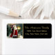 Schönes Weihnachtsadressen-Etikett mit einer Laterne und seinem Personal in der links Hand und einem Sack gefüllt mit Geschenken über seiner rechten Schulter auf schwarzem Hintergrund. Klicken Sie auf die Schaltfläche "Anpassen", um Ihren eigenen Namen hinzuzufügen, den Stil des Schriftartes, die Farbe des Schriftartes, die Größe des Schriftartes und die Hintergrundfarbe zu ändern, um Ihren Anzug zu erfüllen.