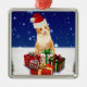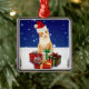 Santa Claus Cat with Christmas Gift Ornament Aus Metall