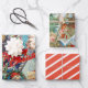 CUSTOM WRAPPING PAPIER SET VON 3 FLACHENSCHÄTZEN UND EINEM ROTEN UND WEISSEN PAPIER.