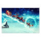 Der Weihnachtsmann fliegt mit Rentier über dem Haus. frontiernow.com