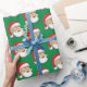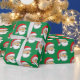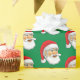 Der Kopf des Weihnachtsmanns auf dem Papier mit grünem Hintergrund.