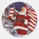 Santa Claus hält die amerikanische Flagge Runder Aufkleber