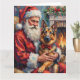 Santa Claus Holding German Shepherd Christmas Art Karte