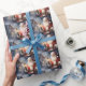 Pretty wrapping paper with an image of Santa Claus holding a lantern, standing in front of a home he just delivered gifts to