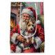 Santa Claus Holding Wirefox Terrier Christmas Art Mittlere Geschenktüte