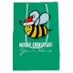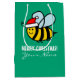 Santa Claus honey bee Christmas gift bag design. Cute animal cartoon design for adults and kids. Personalized Xmas wishes. Humorous Santa Claus bee design for the Holiday season.