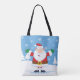 Carry your holiday cheer everywhere with this festive tote bag featuring a cute cartoon Santa Claus in a snowy winter scene. Made from durable polyester with a vivid double-sided print, this sturdy bag is perfect for shopping, gift wrapping, or everyday errands. The cheerful Santa design adds a touch of Christmas magic to your look, making it a practical and joyful accessory all season long.